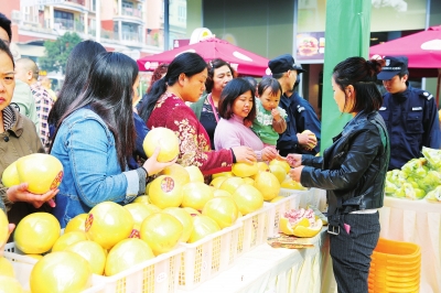 市民在第四届水果节上选购柚子 本报记者 曹丽华 摄