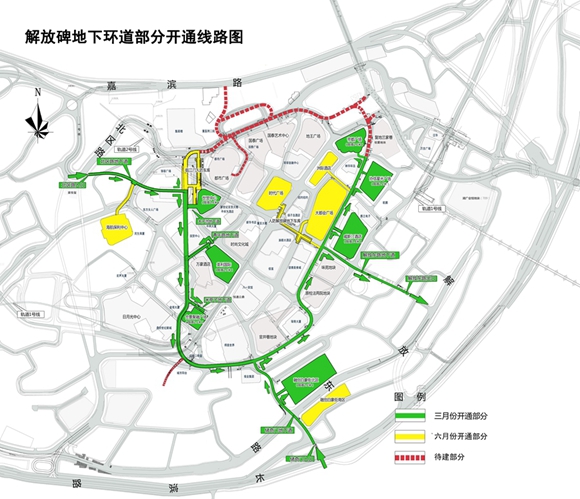 解放碑地下环道部分开通线路图。渝中区委宣传部供图 华龙网发