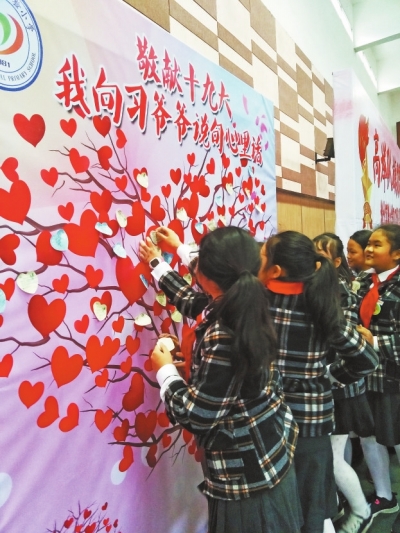 同时,该校的少先队员们还把自己的感受、美好的期望以及深深的祝福融入一幅幅板报、一张张祝福卡中,表达了自己对党的无限热爱和对祖国繁荣昌盛的美好祝愿。
