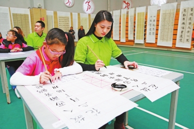 承办这样的全市大型活动,活动组委会为何多次青睐空港新城小学?在活动现场就可以找到答案。记者在现场看到,来自该校的书法爱好者及其家长同桌书写,有写毛笔字的,有写钢笔字的,小楷、行书、隶书等风格各异,令前来观赏的“专家级”书法爱好者们啧啧称奇。