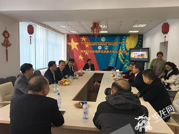 “2017感知中国·重庆篇—哈萨克斯坦行”嘉宾在阿里法拉比哈萨克斯坦民族大学孔子学院进行交流。首席记者 佘振芳 摄