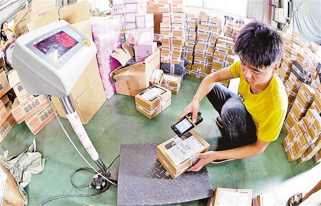 秀山农村电商仓储配送中心,丁丁网电商配送员在扫描货物。目前,我市已实现1919个贫困村电商平台全覆盖。(受访者供图)