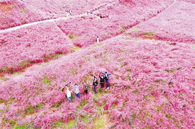 10月3日,万盛经开区金桥镇尚古村,粉黛乱子草组成的“粉红田野”吸引了众多游客,乡村生态旅游助推了农民增收。特约摄影曹永龙