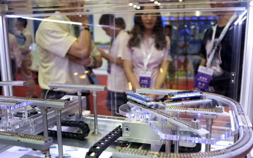 资料图片:这是在北京举行的2017年世界机器人大会上展出的智能交通系统模型(8月24日摄)。