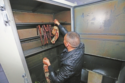 在人们传统的观念里,做出来的香肠腊肉一定要用燃烧柏树丫、糠壳等产生的烟雾来熏制,这样熏出来的味道才地道。