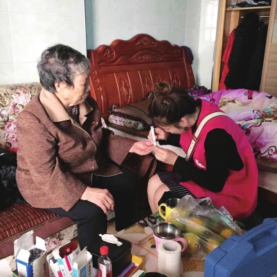 工作人员上门为老人开展护理服务 本报记者 柯雨 摄