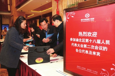 1月12日上午,参加渝北区第十八届人民代表大会第二次会议的代表们陆续来到会务处报到