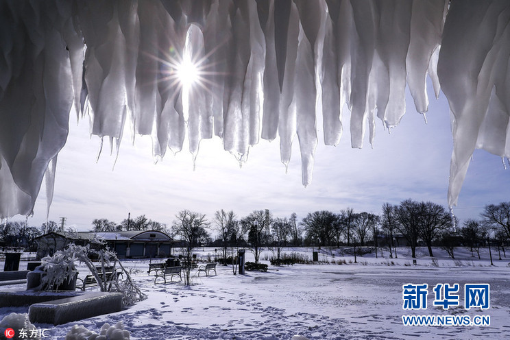 芝加哥遭遇极寒天气 海滩冰柱林立唯美浪漫